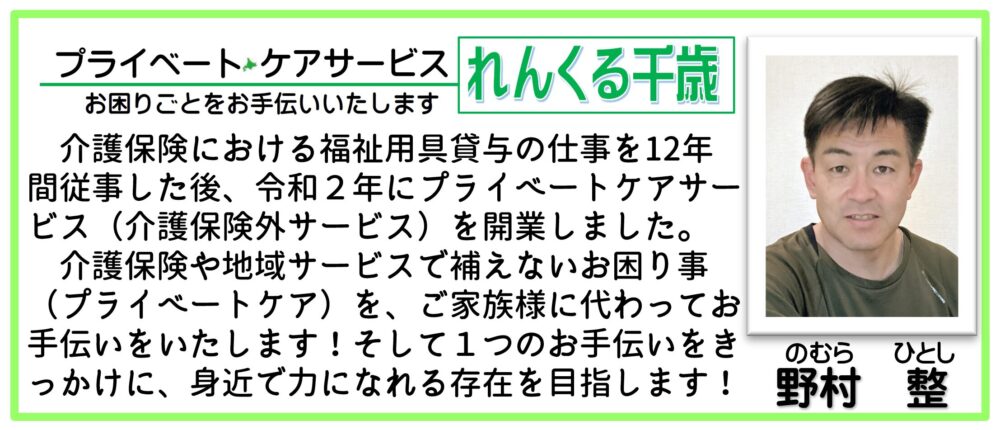 - 介護保険外サービス(千歳市発の在宅お手伝いサポート)